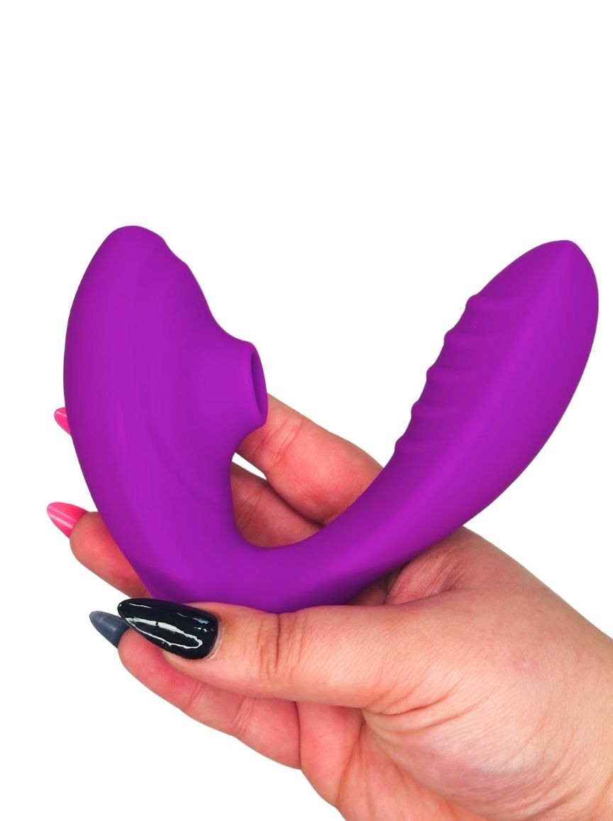 This deep Purple beauty features a curved shaft with a ridged texture that adds an extra layer of internal sensation, designed to press right into your G-spot while delivering powerful, vibrations with 10 unique modes. At the same time, the clitoral stimulator surrounds your sweet spot and offers 10 levels of suction, gently pulling and pulsing to build pleasure.